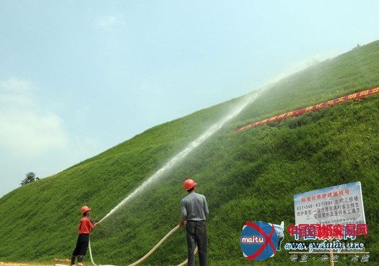 图纸摘要:日前,工人对大年夜广高速龙杨段绿化好的边坡举行喷水养...