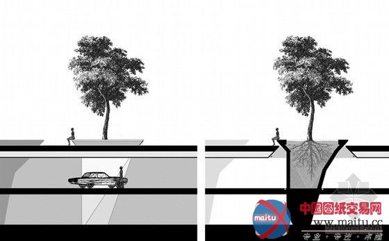 室外,连续赓续的人形展道和喷泉转化了先前酷寒的混凝土环境。泊车场的布局支持柱为大年夜型树木的发展供应了有益前提,为这个不宜植物发展的环境增加了绿色。