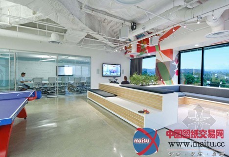 这是总部在在加利福尼亚州的另外一个互联网公司Dreamhost的办公室。其计划是由旧金山计划事情室O+A的计划师完成的。这也是他们在为Facebook和美国在线(AOL)计划完办公室后的又一个计划。是一个开放式办公室,在这里,可以举行集会,也能够举行乒乓比赛。办公室内添补着色彩美丽家具,墙壁上装潢着各式图案。事情场合被安排地点的地区由非正式的安息区所围困着的。