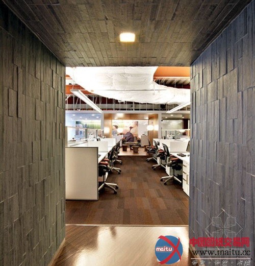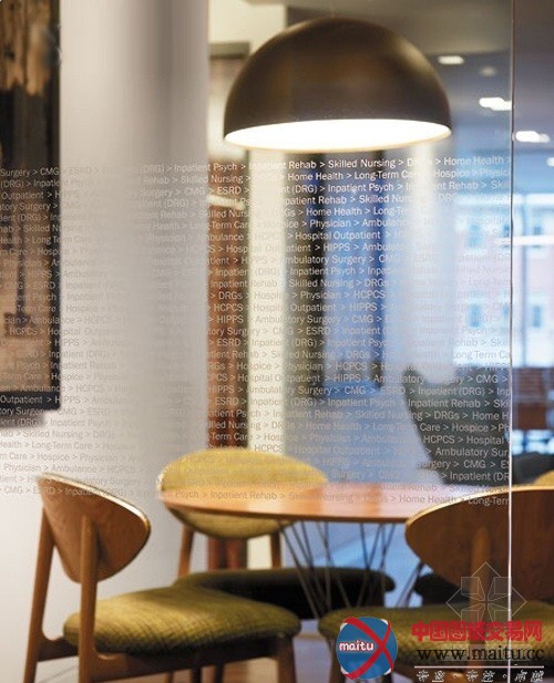这是由修建计划公司 SmithGroup 计划的一个办公室,是位美国 Burgess Group团体计划,他们是一家专业从事医疗保险轨制与医疗津贴轨制的补偿与退还的软件开辟商,办公室的计划仿佛温馨感很强。 欢迎区地面满展染色榆木地板。前台由皂石与树脂制作。欢迎区60英尺长的背景墙满展 Vermont 板岩。伊姆斯集会椅与定制的集会桌,集会桌面层为烤漆玻璃并嵌进条形白色橡木。欢迎区装潢玻璃墙边一组 Noguchi 桌椅置于 Marcel Wanders 灯具下。 休闲区由名师系列桌椅构成,包含:Noguchi 茶几、Eames 凳子、 Pierre Paulin 凳子 and 椅子, George Nelson 长椅, and Jasper Morrison 吊灯。 该地区同时作为通道利用。早餐吧上方悬垂着由 Ray Power 计划的特色吊灯。
