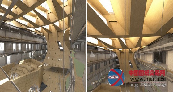这个建筑需要知足讲授所需要的环境前提,具体包含可用于进修和鼎新讲授的各学科工作室。建筑里有一个中庭,和一个木盒子式的工作室大年夜厅,可作为自由讲授空间,可以或许让室内接管天然通风和阳光。一层有14320平方米的空间,因为建筑外表是多孔挡板,室内布满了柔和的散射光。就如许,新的外表给了这个汗青建筑艺术化的室内光线结果。