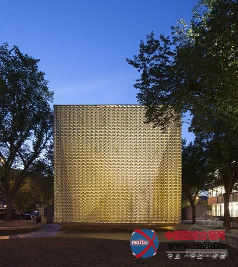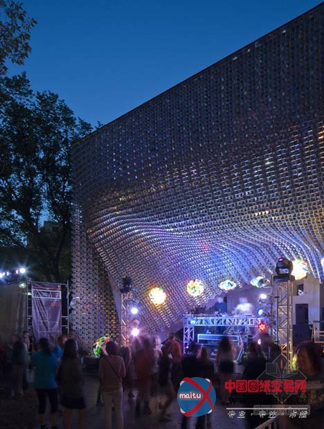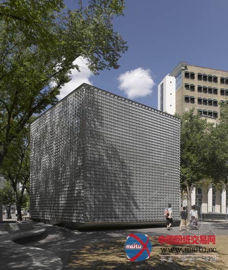 “旧市场广场舞台”——也被称为“铝立方”——是由5468796建筑事务地点温尼伯市一座近期重建的公园中间建造的。它的混凝土布局外围由20000块铝片构成的锁甲包覆,这类锁甲就像是建筑概况的幕墙。它可以经由过程不合泛泛的编制拉起外墙,进而闪现出其舞台;而在其他时辰这块幕墙则是一块起呵护感化的屏幕,为内部空间抵抗天然侵害。“它将本该过时的壳形舞台的概念放在这片场地上,当这块舞台没有表演的时辰它将会看起来很是孤单,”建筑师如许诠释他的作品,他感觉如许可让它看起来在漫长的冬季像是在“冬眠”一样。“铝立方”部安装了一套照明装配和投影设备,它们会将变幻的色采、图象和影片投影到金属概况。建筑前的一片草地会在有表演的时辰变成不雅众区,在广场的边缘将会有良多曲线长椅供人歇息。