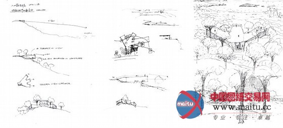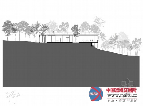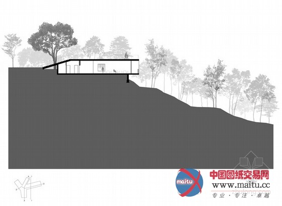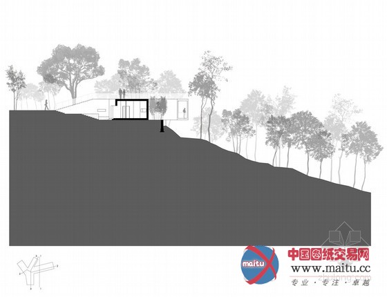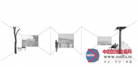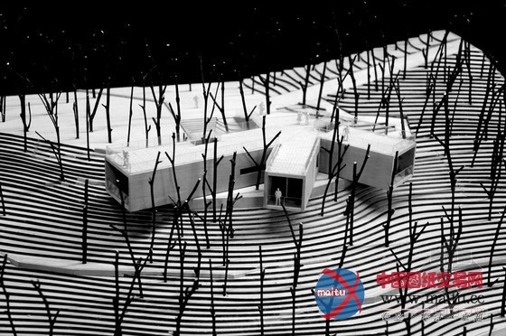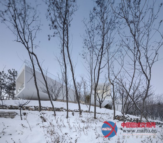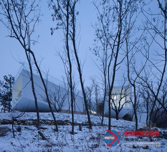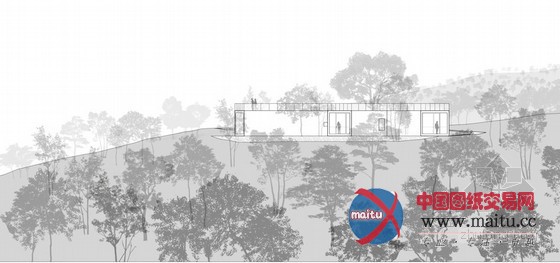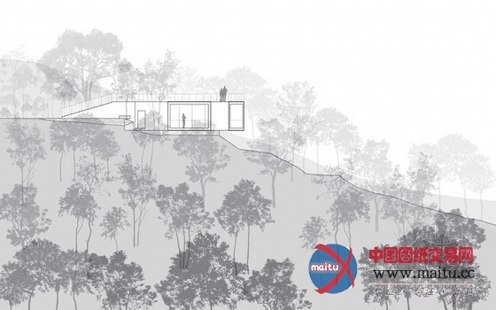建筑的平面分支成三个标的目标,构成了一个半埋、半悬臂式的建筑。建筑表里高程动态改变,让游人可以看到各个标的目标的全景画面。下面的半层空间是茶馆和画廊,奇妙地与不雅景功能组合在一路。光溜溜、白色的室内空间与周围树木粗拙的线条相共同,三个不雅景地道绝顶是大年夜型玻璃窗,最终朝向远处城市绝顶的大年夜海。屋顶也被设计成暸看露台。
