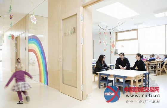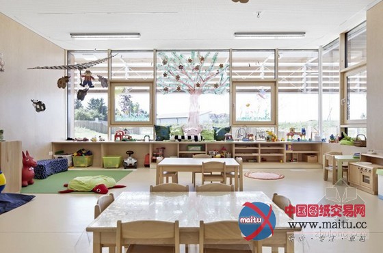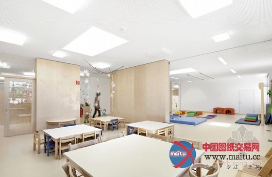 连同卫生间和存储空间,每个勾当室都是一个自力的单位。玻璃幕墙,平顶采光窗及户外花圃共同创作发现了一个布满天然色采和阳光的活泼空间。勾当室的设计是开放的,建筑的一些角落用作游乐区或放置玩具,如许的设计使得不合功能区域自由组合。同时,开放的空间加倍便于身体残疾的儿童出进所有区域。进口处周围的餐厅也能够作为“家长咖啡厅”。