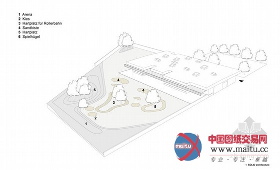 SOLID architecture设计的方案建筑布局明白:户外区域,东侧临街,北侧作为泊车场和进口通道,不受交通干扰的西侧和南侧是孩子们专属的户外空间。