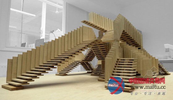无遏制的构架和这些布局可以或许实现的可能性,鞭策了英国公司dRMM往探访这类无限无尽楼梯的潜力。姑且雕镂的一系列的伶仃的楼梯,可以彼此交叉,一个有框架,有范围的三维活动模式,有时辰,会是绝路末路一条,但有时辰却可以通向某处。每个组件的预制扶植都是很是首要的,如许便于拆卸和添加。有了如许的部件,便可以很等闲的被安装在其他建筑上。这个“无限无尽的楼梯”将在2013年9月13号到10月10号的伦敦设计节上被安装在泰特现代美术馆前面。该项目是由美国硬木出口委员会援助,全部设计中,都采取可延续操纵的郁金喷鼻木,并供给不凡的力量和重量对比。