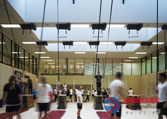 体育黉舍内部除根本讲堂觉得还包含泅水池、室内体育举措措施和一个15米高的攀岩墙。其它举措措施还有一个食堂、多媒体藏书楼,体育尝试室和一个泊车场。建筑屋顶还有一个可以产生电力和热气的太阳能电池板。建筑外部有树林和大年夜草坪构成的公园。别的,该黉舍建筑的一面外墙采取玻璃墙的设计,让学员在里面可以不雅赏到建筑外面的公园和天然风景。建筑内部彩色的墙壁上也被印有骑自行车的运带动图象,体操运带动的图象,曲棍球的运带动,足球运带动的图象的图象等,与艳丽的布景墙构成强烈的对比和映照。