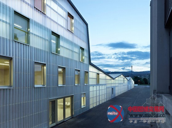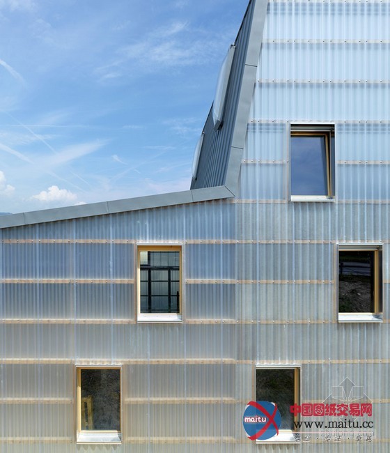 该建筑是由瑞士的建筑设计公司bunq设计,建筑的屋顶外不雅是波浪外形的,该项目作为一种多功能建筑体,可以当作大年夜厅,仓库,车库,乡镇处事处和公司员工的房间来利用。建筑内部的木梁由氧化锌包裹着,很是精练大年夜方。建筑门面是由两个透明的玻璃门构成的,可以看到建筑内部布局。建筑的窗户设计,可让人们赏识到阿尔卑斯山脉和莱蒙湖。