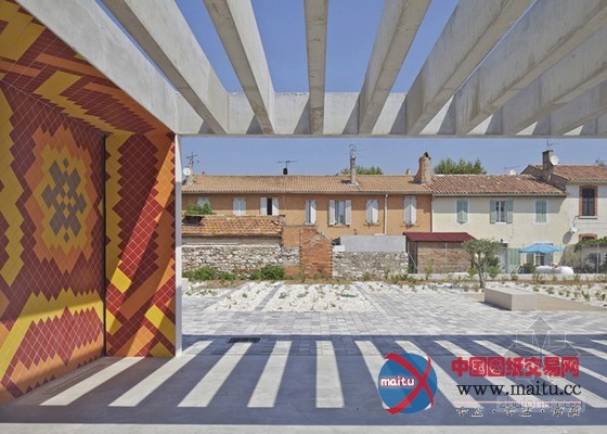 法国建筑工作室Comac在普罗旺斯设计了一个场馆,场馆用的是收受领受的瓷砖来装潢墙面的。这个展馆是城镇中间的一部门,包含一个新的广场,一个儿童游乐场,一个花圃和一个改革过的石头谷仓。场馆的四个空心部门,是一个防护区域,每个区域都有五彩的瓷砖。场馆外面是一条运河,运河由树木和花草环抱着,别的,这里还设有一个喷泉,一个小型的露天剧院,剧院里面有长凳和分层的坐位。全部项目就是为城市创作发现一些首要的公共交换平台,促进人们的社交集会和勾当。
