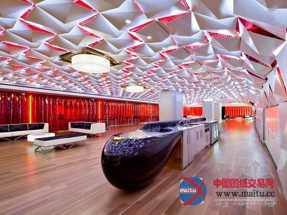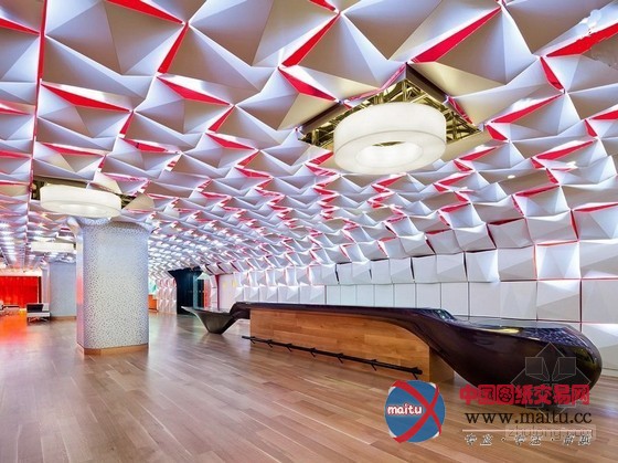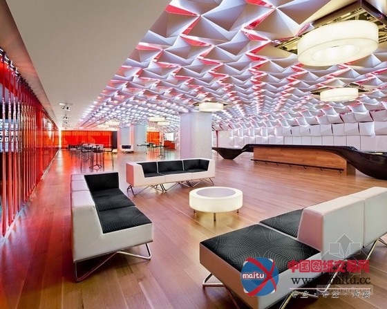 摘要:这个多功能厅由地下泊车场改建而成,一个图形天花板贯穿全部空间,红色是空间的主色调搭配着奇特的天花板让旧日沉闷的地下泊车场变得活力四射,这里常被用作开舞会和组织各类勾当,空间里设有黑色艺术造型的歇息椅、歇息区,便于人们歇息扳谈,卫生间的洗手盆也具有强烈的造型感。