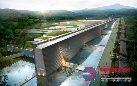在这建筑下方供给一个进口,进口外形像翻开的书角一样,进进博物馆就仿佛是完成一个传奇的济州岛神话之旅。博物馆的石头墙不但供给了与众不合的风光,并且也有着连接不合展览区域的功能。博物馆的外面有着如天空一样干净的水池和斑斓的花圃,建筑与周围的天然***映衬。户外空间的设计与主题依从于济州岛的汗青和神话。经由过程水元素,石头墙,绿色植物和其他设计,揭示了8个不合的主题,让不雅众可以进修和体验神话般的济州岛。因为项目地处天然景区,所以设计师出格考虑了可延续的设计思路。设计师完美地操纵了太阳能和风能,使得建筑既包管天然通风,又可以削减能源的利用。而建筑的良多屋顶还可以用来削减热能的耗损,和汇集雨水。