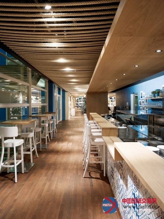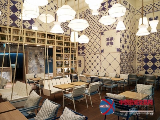 Azzurro餐厅位于苏黎世展览大年夜楼,餐厅设计主如果想营建出一个精练、优雅、具有海滨气息的就餐环境。餐厅内以木质布局为主,秋千式的座椅和餐厅顶部各类外形的照明灯,给室内增加了良多乐趣。餐厅空间浅木色餐桌浑朴、整洁,搭配白色座椅温馨而新颖。 关头词:餐厅空间 餐厅设计 Azzurro餐厅
