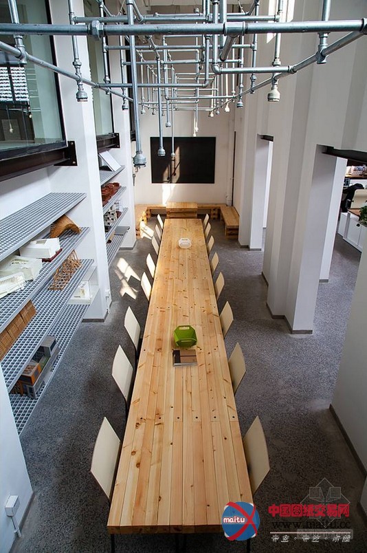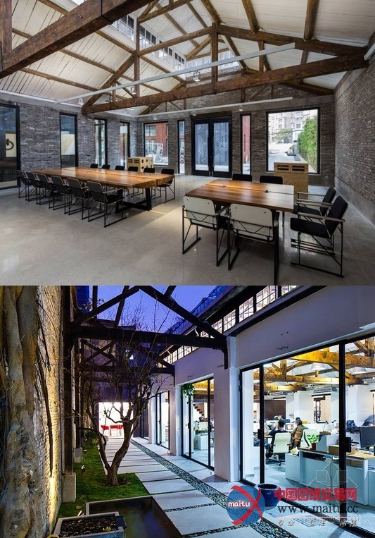 章明:以新近完成并搬家的原作设计工作室为例,讲述了一个连做仓库都被嫌弃的上海鞋钉厂老厂房,经设计师的高手化陈旧陈腐为奇异。操纵混凝土密封固化剂清算地坪,保留青砖墙面和板屋架,白水泥材料辅以阴刻字被利用于桌面,木材以燕尾榫拼接设计的会议桌,自行设计并安装的镀锌水管灯,植物、水面构成的天井向工作空间开放……原本的老厂房模糊可见,但已完全换做新的功能。