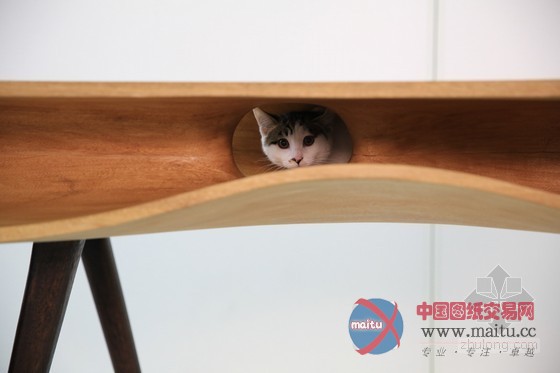 养猫的人都曾有过如是体验:其一是把蜷缩成一团的猫从你的腿上放下,总像是一种典礼般的略带伤感的拜别。其二是当猫面对有只有它一头大年夜小的孔洞,总会奋掉落臂身一头扎进往,在狭小的空间里掉落个头跑出来,再次钻进往,并乐此不疲。《CATable / 猫桌》的设计试图连络以上两种体验,为人和猫的互动营建一个完美的场合。它既是一张合用的桌子,又是一个猫的乐土。