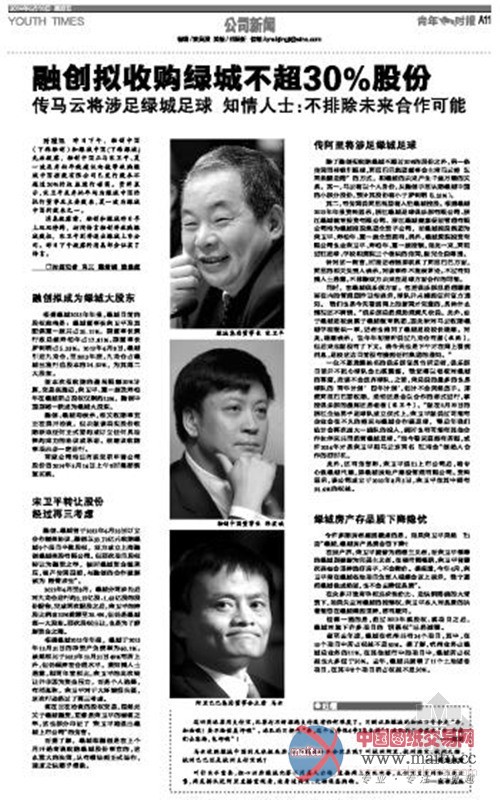 融创拟收购绿城30%股权 成为绿地第一大股东 另据媒体报道,目前绿城中国股权结构为:宋卫平家族25.4%,九龙仓24.6%,寿柏年家族18.1%。在2012年6月8日九龙仓入股绿城的协议中,如果悉数兑换25.5亿港币的可转股证券,九龙仓将持有绿城中国35.1%的股份,而成为绿城第一大股东。 15日早上,融创与绿城双双发布停牌公告,称“待公司发出一项可能构成公司内幕消息的拟交易公告”。停牌前,融创及绿城前一交易日在港交所的股价分?e收报4.13港元及7.81港元。绿城集团已经连涨三日,12日至14日股价分别涨3.19%、4.78%、4.83%,融创中国12日、13日分别涨6.27%、7.18%,14日该股小幅回调跌1.20%。 |