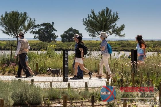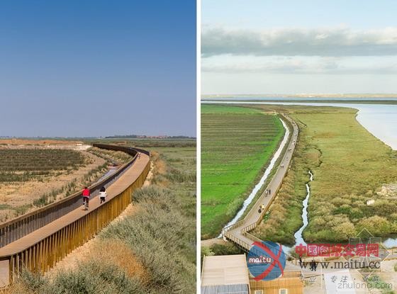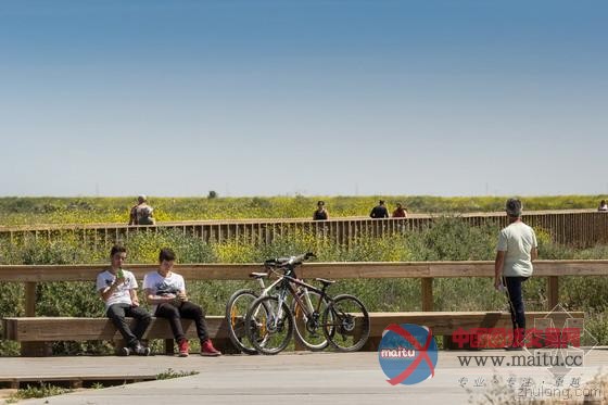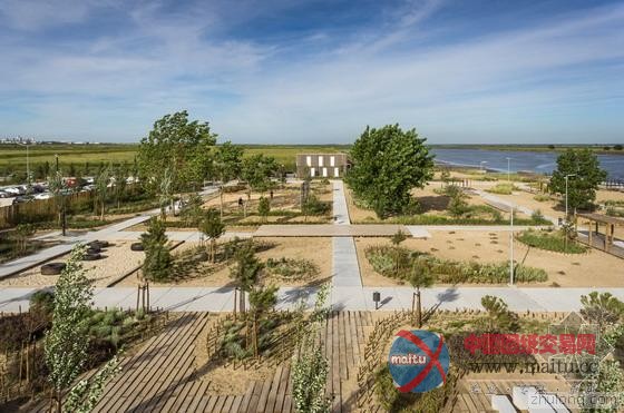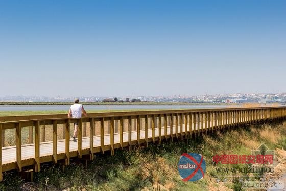 | 塔霍滨河带状公园由两部分组成:位于沙滩海畔的独立多功能区“垂钓海滩”(PRAIA DOS PESCADORES),以及与泥土路、海岸(溪流和排水渠)相连、源自城区和自然区,最终汇聚至垂钓海滩的的6km长人形步道。葡萄牙塔霍滨河带状公园项目由Topiaris事务所设计。