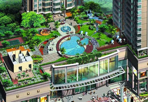 某城市市政广场鸟瞰效果图