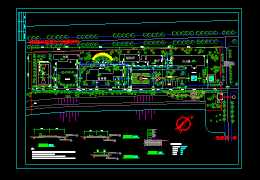 图纸摘要:某制药厂绿化规划平面图,植物配置,给水。...