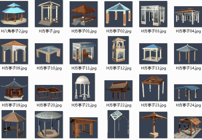 图纸摘要:附件里有61张各种亭子效果图,供参考!...