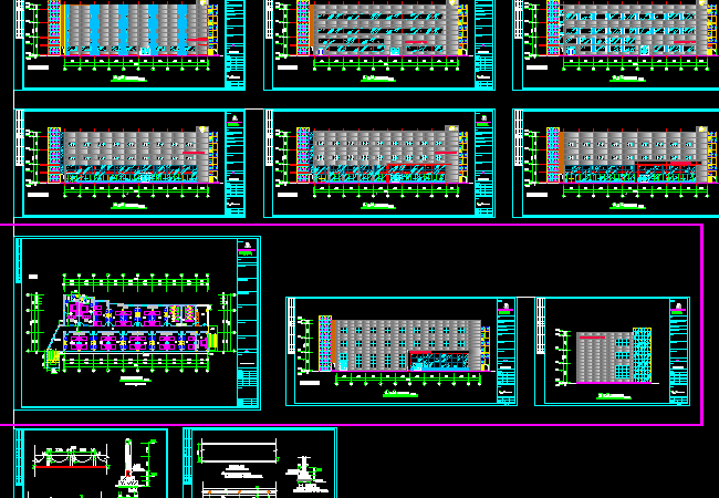 图纸摘要:一套完整的四层宿舍楼立面,简约现代主义,供学习。...