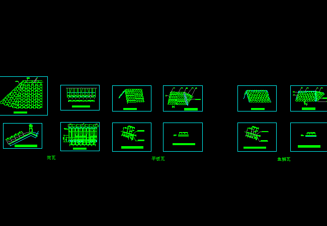 图纸摘要:此图就是一些瓦屋面的设计施工图,有简瓦、平板瓦和鱼鳞瓦,三种设计图。...