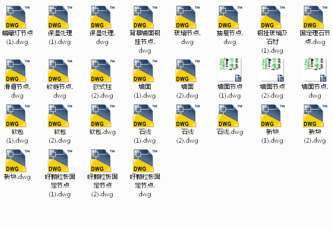 图纸摘要:建筑室内节点详图,共28个文件,很全面,供参考!...