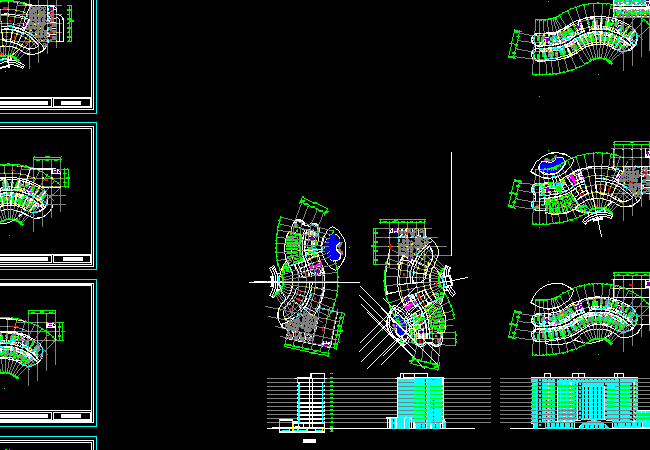 图纸摘要:图纸包含剖面,里面,地下车库,顶面,西立面,正立面图等,还有各楼层的平面图,图纸都是分开的。...