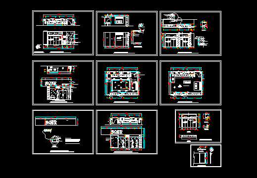 图纸摘要:服务台43正视图、服务台44正视图、剖视图、服务台48上视图、剖视图等。...