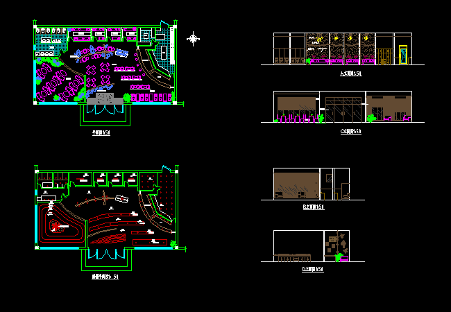 图纸摘要:咖啡厅设计的平面、立面、顶面设计图纸...