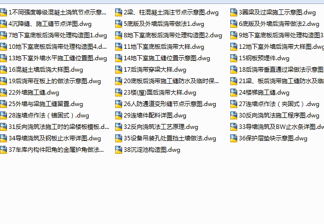 图纸摘要:混凝土工程图集全套,共38个文件,包括不同强度等级混凝土浇筑节点示意图、梁柱混凝土浇注节点示意...