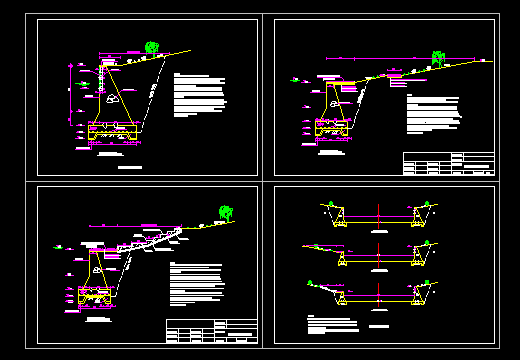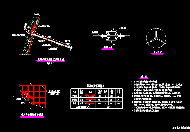 图纸摘要:全套边墙护砌及锚杆支护设计图,设计C25现浇砼护坡中配置钢筋网,锚杆及加强筋与护坡钢筋网焊接。包...
