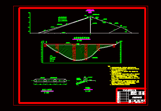 图纸摘要:大坝上、下游立视图、大坝平面布置图。...