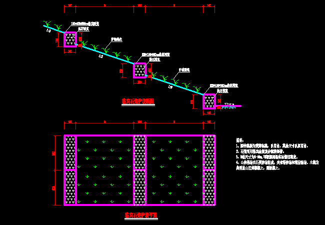图纸摘要:图中高程为黄海标高,以米计,其余尺寸以厘米计。D的尺寸根据现场实际情况确定。袋内填充物:场地土...