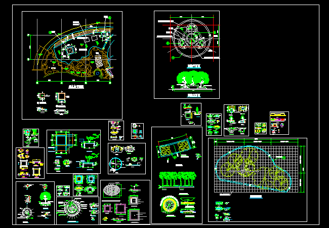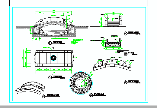 图纸摘要:屋顶花园设计施工,包括:环形休息坐凳平面图、树池平面图、戏水台平面图、绿岛平面定位图。...