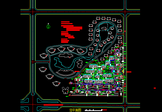 图纸摘要:总用地面积:57462平方米,建筑面积:106197.50平方米,其中:叠拼别墅建筑面积:17962.10平方米,高层住...