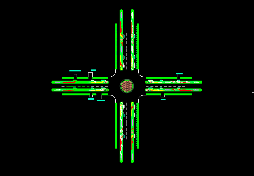 图纸摘要:城市道路绿化平面图,本图纸是主要交通干道的平面图。位于市中心,中间为交通环岛。本图为三板二带...