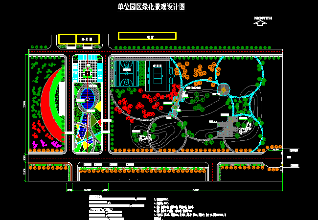 图纸摘要:本套图纸为某单位园区景观绿化设计图,规划范围东西282m、南北146m,规划总面积41600㎡,其中已形成...