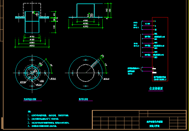 图纸摘要:本图为超声波液位传感器安装大样图,传感器穿楼板安装,并设不锈钢保护外罩。...