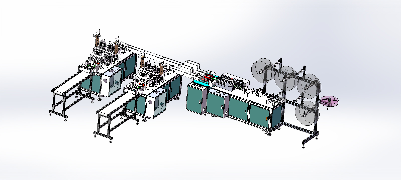 全自动平面口罩机一拖二全套图纸包含PLC程序BOM表solidworks三维图和平面图