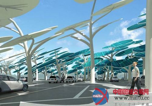 内维尔•马尔斯的太阳能“丛林”中,每颗“树”的各“分枝”顶端都安装了光电“树叶”。每个“树干”的底部都有电源插座,可为人们出行增补能量。当然堆叠的太阳能光电“树叶”的效力大概还不尽如人意,但是,与尺度的日晒雨淋的混凝土泊车场比拟,这类太阳能丛林不但在审美层面上明显地更胜一筹;并且,它也为太阳妙技术与天然环境的连络供应了很棒的灵感。