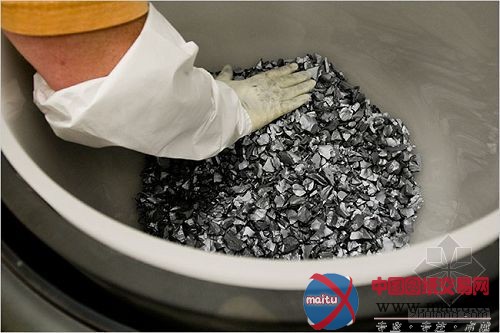 图3.SolarWorld 工厂的一名工人在事情中,容器里装的就是多晶硅。