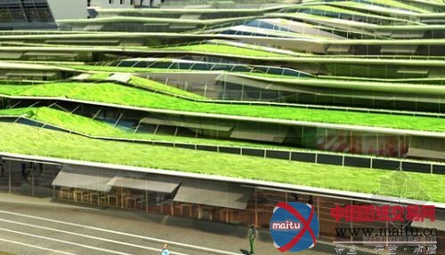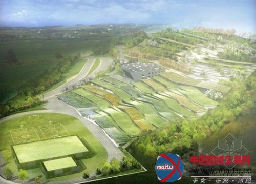 这三家公司的计划师利用黉舍周围斜坡的限定,经由过程纳进高山环抱的修建,确保这一新修建受益于周围的天然环境。此中,最令人震撼的计划要数笼盖在主修建之上的多层绿色屋顶。每层楼层设有高窗,使得全部楼层都能充分照耀到太阳光。别的,全部绿色屋顶显现出破浪型,屋顶顶部种植有蔬菜。