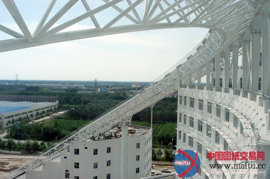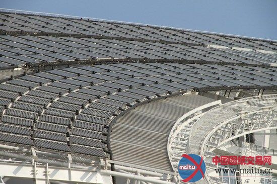 大年夜厦外层钢布局上架设了密密层层的集热器。