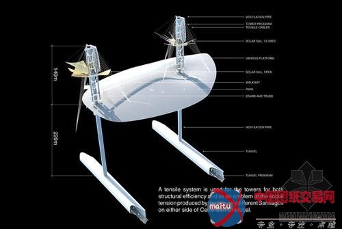 由六个地道和垂直的通风竖井构成的项目利用高山创作发明大年夜气的活动,来办理圣地亚哥氛围质量问题,同时促进芝加哥转变成21世纪天下城。气流在受污染的氛围和上面的热氛围之间构成一个不稳定的大年夜气层,制作犹如平常雷雨的天色前提,来净化圣地亚哥盆地的氛围。这类暴风雨成为环球的标记,就像芝加哥大年夜风和伦敦大年夜雾一样。这些地道同时也可作为被山阻断的地区与都会的纽带,有的内部有教导举措措施,有的是艺术、文化、文娱举措措施,另有的用来泊车。六个山顶的竖井将成为圣地亚哥和智力的新标记,注解可连续性和社会发展的连络。
