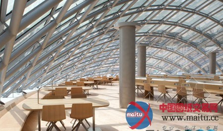 日前,芝加哥大年夜学庆贺这座藏书楼新馆的开张,此中2500万美元的资金来自于该校卒业生Joe和Rika Mansueto,计划者是Helmut Jahn。玻璃穹顶下的阅览室可容纳180论理门生,其微微倾斜的轴线仿佛是向周围的亨利•摩尔(Henry Moore)记念碑致敬。闪闪发光的外墙下笼盖的另有三层研讨空间,让门生们可以浏览大年夜量文本。