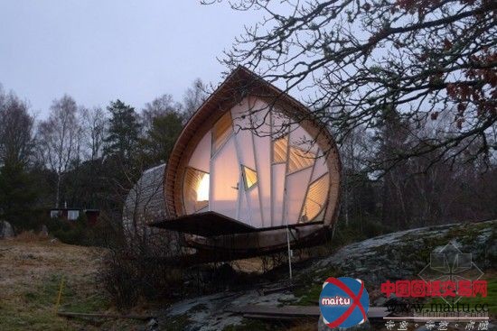 计划师Torsten Ottesjö经由过程这个修建想表现人与周围环境的适应活动性。这个修建的奇特修建美学灵感来自于汽车。计划师计划的这个小空间氛围畅通强、用木料做室内装潢、光芒通亮,并用两面的大年夜落地玻璃窗弥补空间狭窄的不敷。