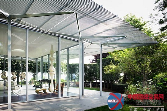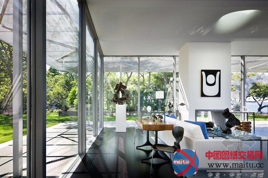 在透明的外框以内,修建另有一层内框,将不雅看全景海景的范围举行了限定,包管了业主的隐私。业主是前博物馆馆长与她的老婆,是以宅子里有一些非比平常的当代绘画,雕塑和玻璃器皿。同时花圃也特别非常的超卓,这个项目有着多姿多彩的室表里元素,修建师在景不雅与艺术的互动中,内与外的恍惚中,超卓的节制了均衡。实现了主人糊口在花圃与艺术中的愿看。