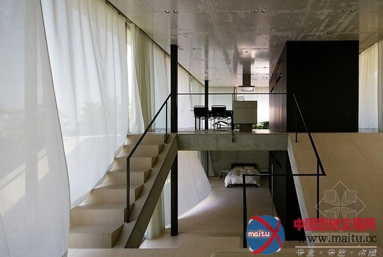 客户是一名胜利的IT专业人士,希看获得一个繁忙事情外融进大年夜天然的世外桃源之地。计划观点表现不凡,充分利用山腰坡度建立了一个奇特的二层楼房,混凝土成团体的“折”弯成S形,构成一个开放一体的内部空间。