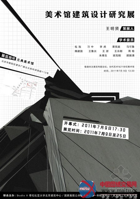 2011年7月9日下战书17:30,“美术馆修建计划研讨展”将在北京元典美术馆举行揭幕式。本次展览由闻名修建批评家王明贤策划,由Studio X哥大年夜北京修建中心、国度画院大众艺术中心、一和研发中心、筑龙网和元典美术馆等五家机构结合主理。颠末三个月的准备,共收到来自国表里50余个观点性计划计划。除展览,于揭幕式当天还将举行“当代艺术与21世纪的美术馆”专题研讨会,将会有十数位修建界、艺术界的权势巨子专家就此话题举行会商。
