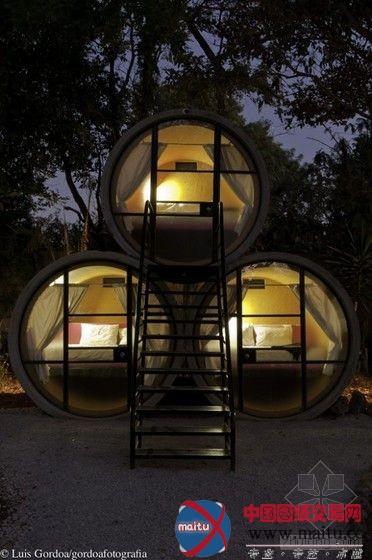 管子旅店是由T3arc计划,位于墨西哥Tepoztlan,旅店采取地下水管道作为旅店的修建主体,名副其实的蜗居,水泥管道的另类利用。有着周围尽佳的视野,计划目标是制作更加便捷和更加便宜的旅店房间,从而为来Tepoztlan参不雅的旅客供应留宿。这个计划显现出三种不合的模块组合情势,以最大年夜限度地利用园地。